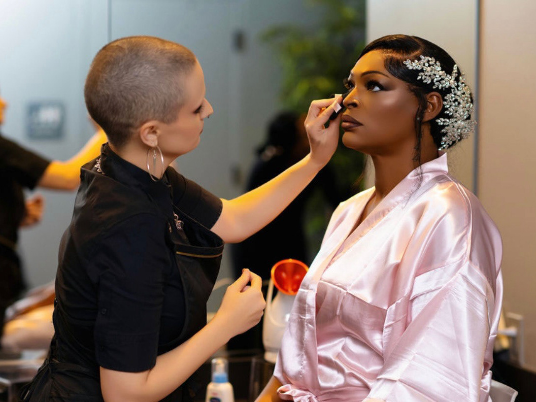Emika wanted Makeup that was "light and professional" for her shift at work, so I created a look that was elevated yet still showcased her natural, beautiful features. For this "no makeup, makeup look," I used products from brands such as Haus Labs, Makeup Forever, Anastasia Beverly Hills, Givenchy, Charlotte Tilbury, and many more.