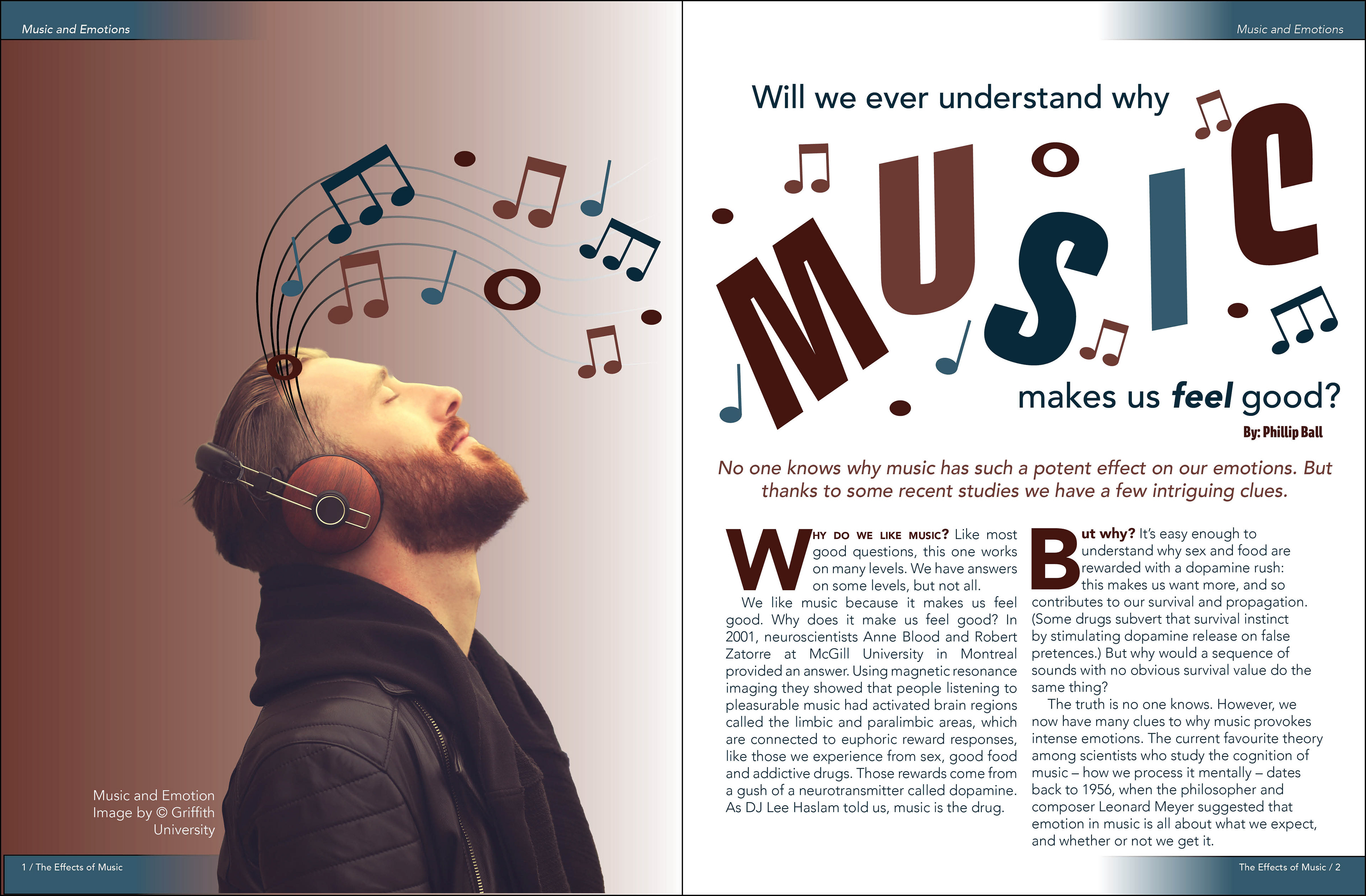 For a school project, students were asked to take an article from the web, and create a layout that best represents the information within the story. I created the design, and I do not own the rights to this article, it was written by Phillip Ball. Image of man - Credit within layout. Advertisement asset- Provided to students by Full Sail University
